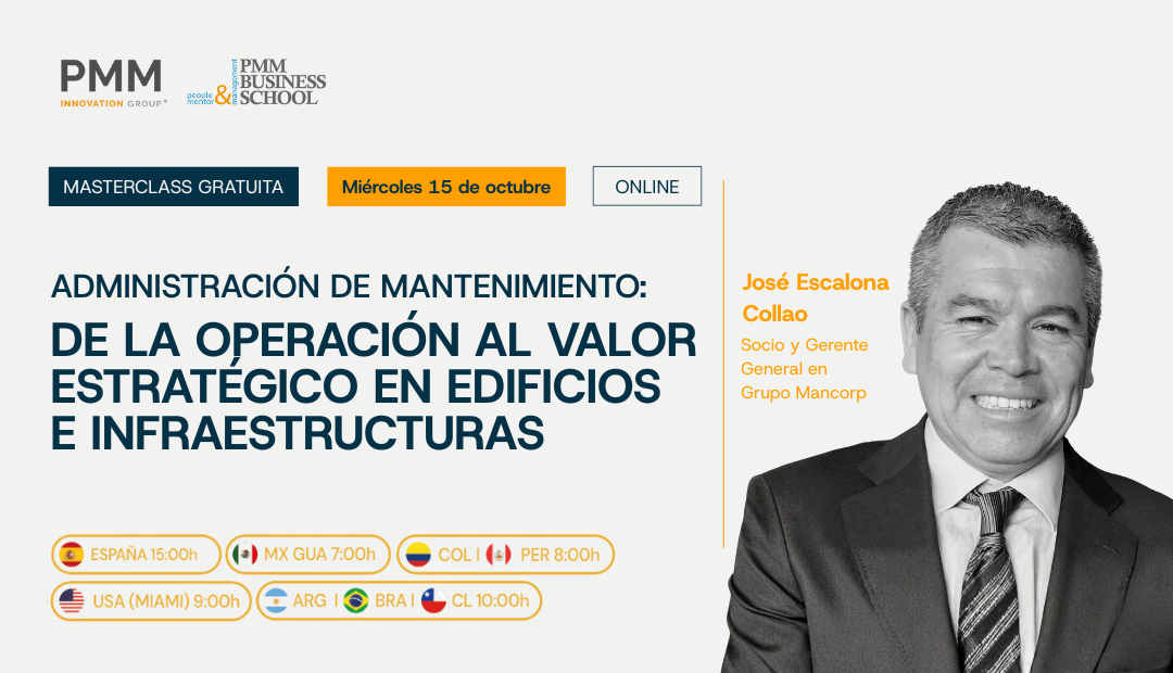 Únete a nuestra Masterclass "Take a Break for Your Brain". En esta sesión, hablaremos sobre administración del mantenimiento y como pasar de la operación al valor estratético en edificios e infraestructuras.
